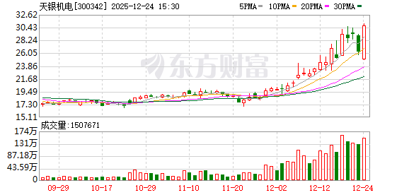 天银机电今日上涨17.21%,全天换手率36.00%,成交额43.06亿元,振幅24.90%。龙虎榜数据显示,机构净买入4.96亿元,深股通净卖出5565.72万元,营业部席位合计净卖出9651.74万元。